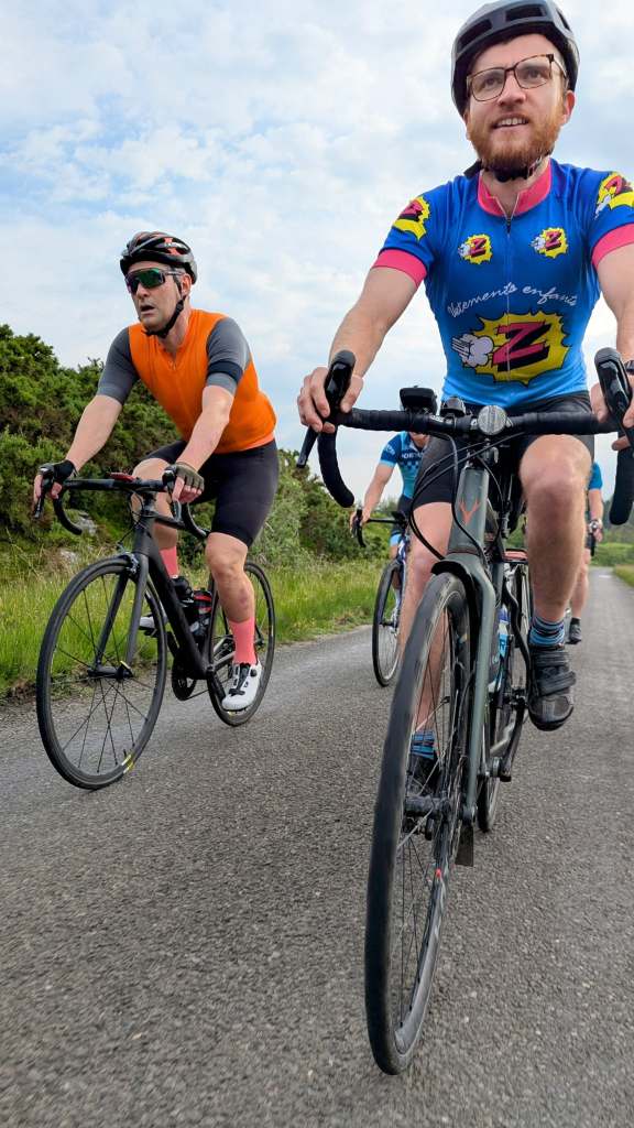 Saturday 22nd – because of a weather warning for Sunday, rides were moved forward by a day. A combined intermediate/inters-plus ride looped round by Humbie and West Saltoun to Pencaitland, back by the ford road and Edgehead (44 miles); the fitness group went via Roslin Glen and Leadburn to Whitmuir, back by the moor road (42 miles). The gravel ride did an East Lothian loop involving railway path, Saltoun big wood and Edgehead (39 miles). The fitness-plus group went out later – up the Granites, left to Heriot, over to Soutra and back via Humbie (52 miles).