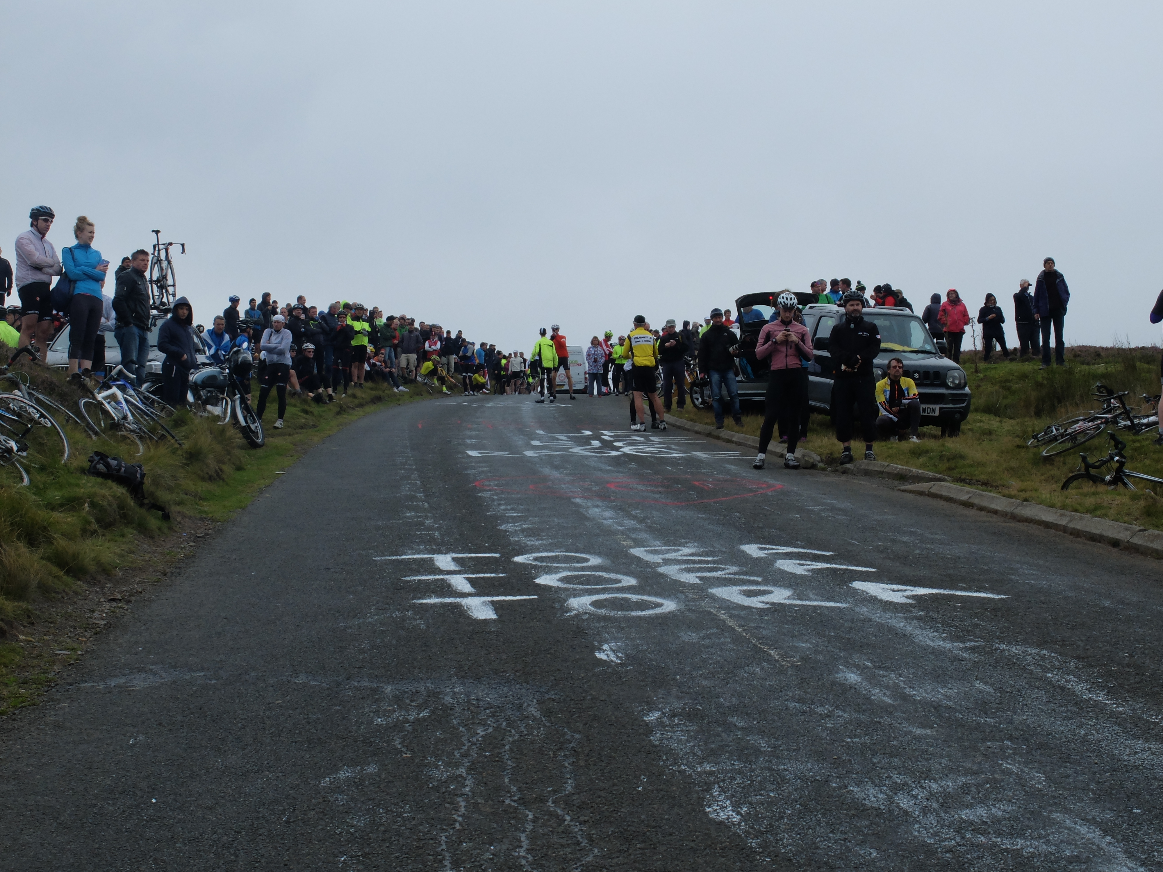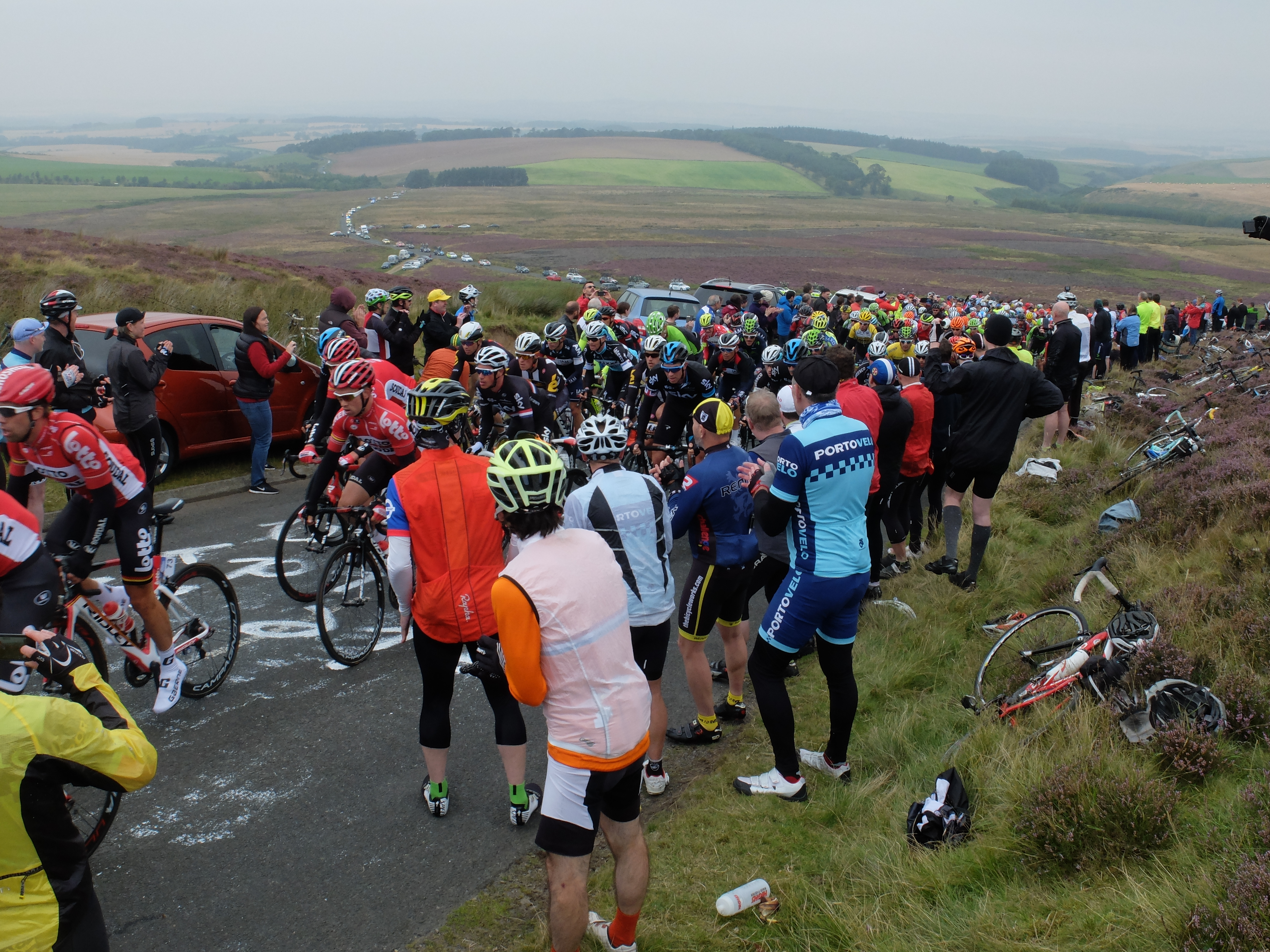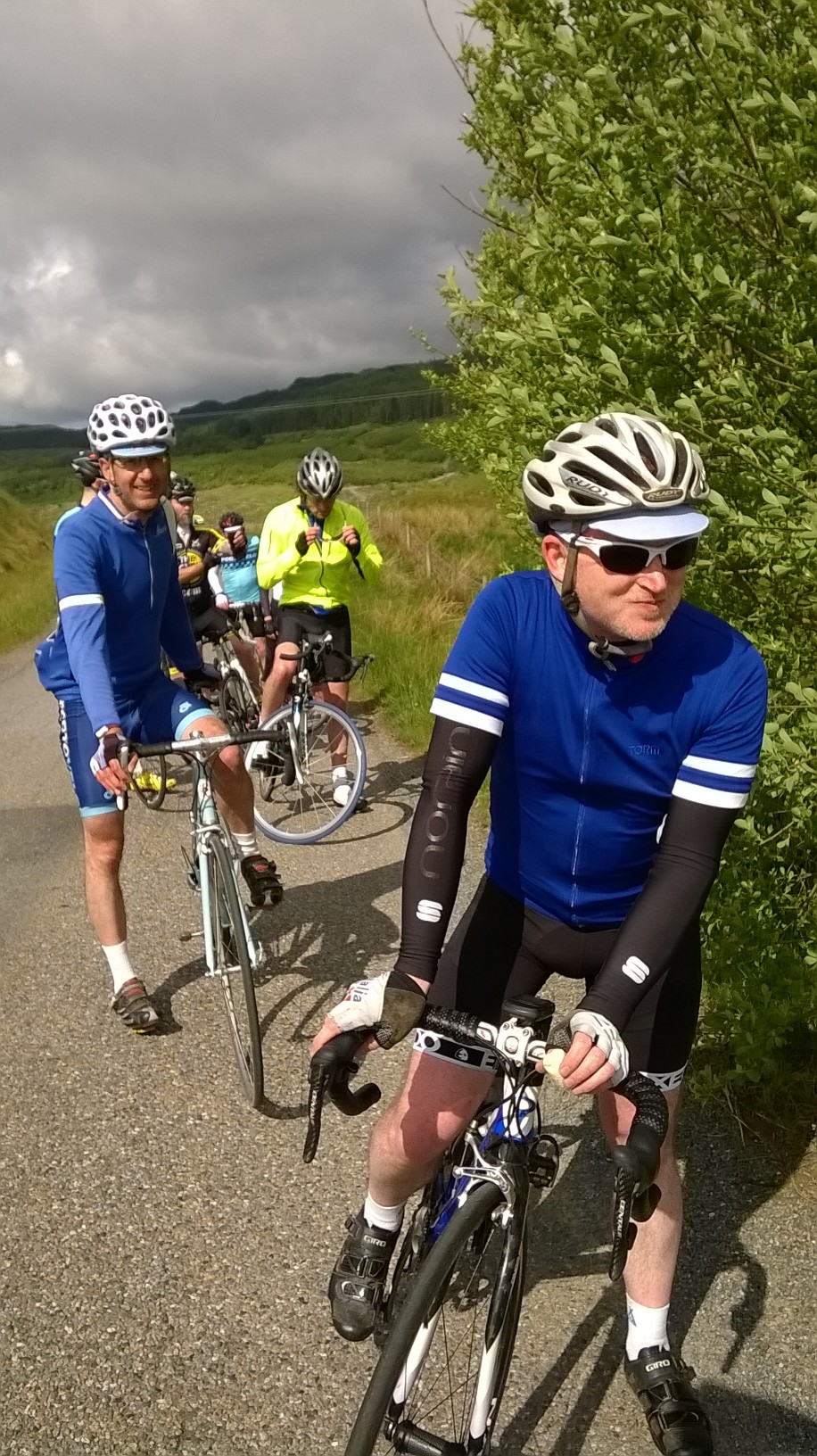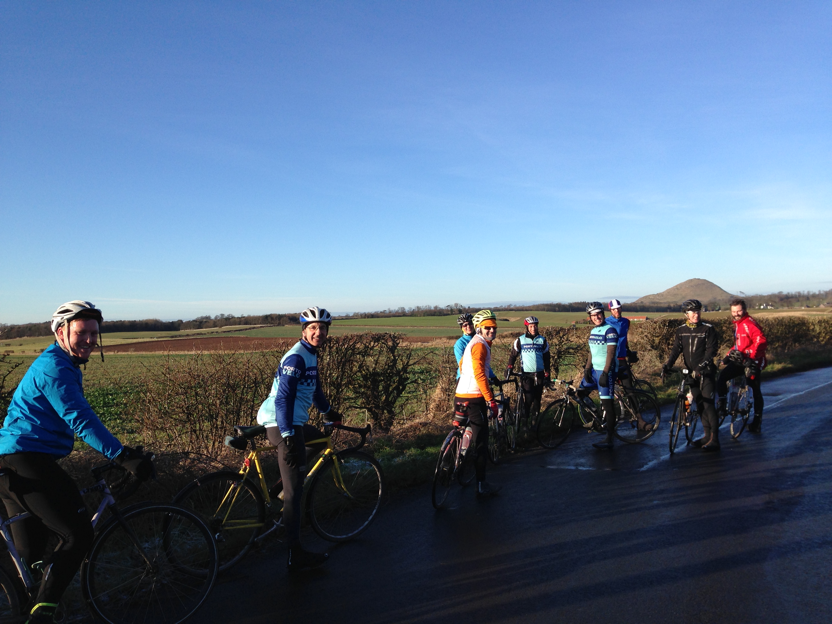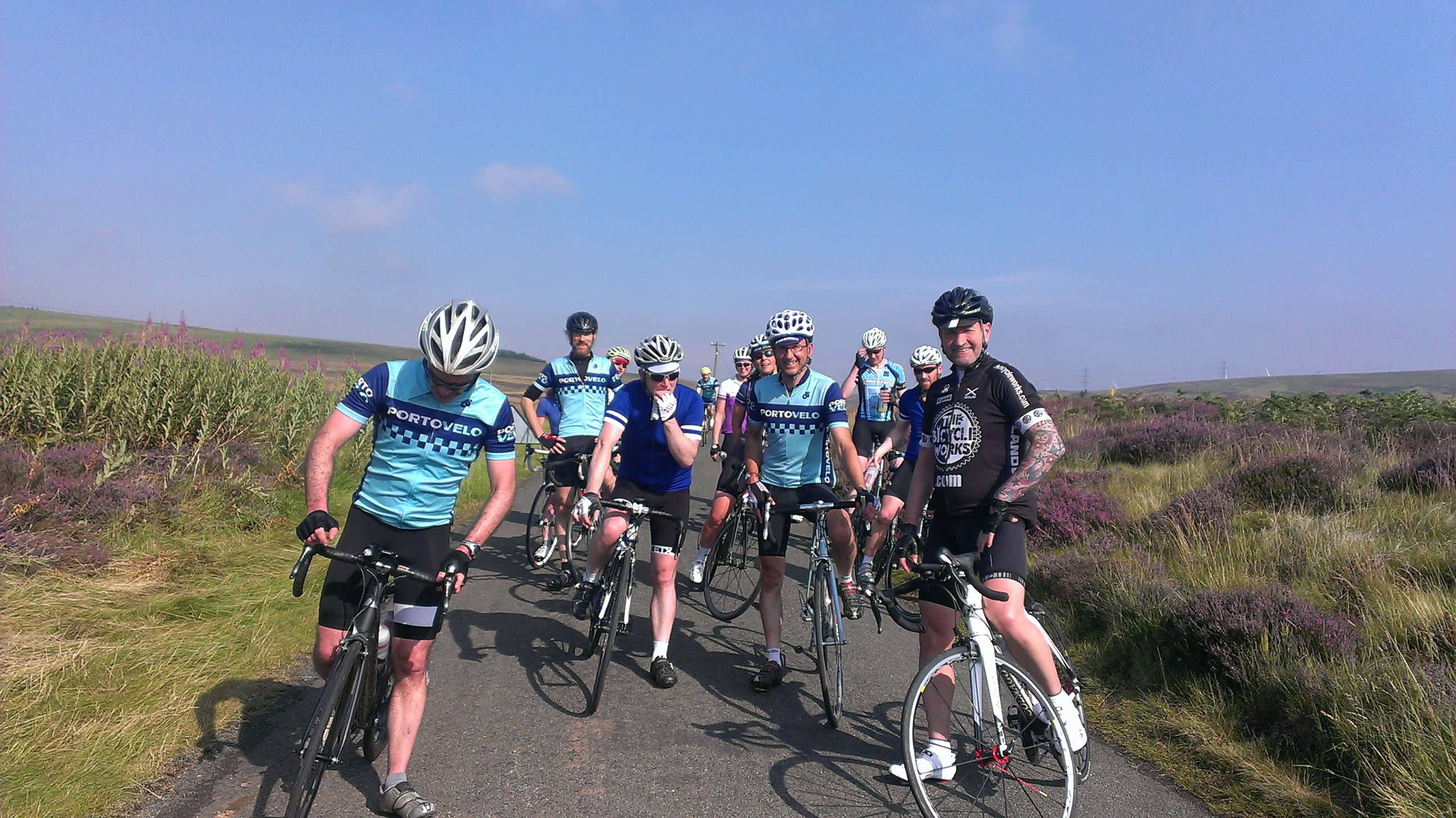 Wednesday 9th – quite a few Portovelo riders rode out via Tranent, E Saltoun and Gifford to join a large crowd cheering the pros up Redstone Rigg (Stage 4, Tour of Britain). Some went on round by Garvald for a longer ride, others came back the same way.