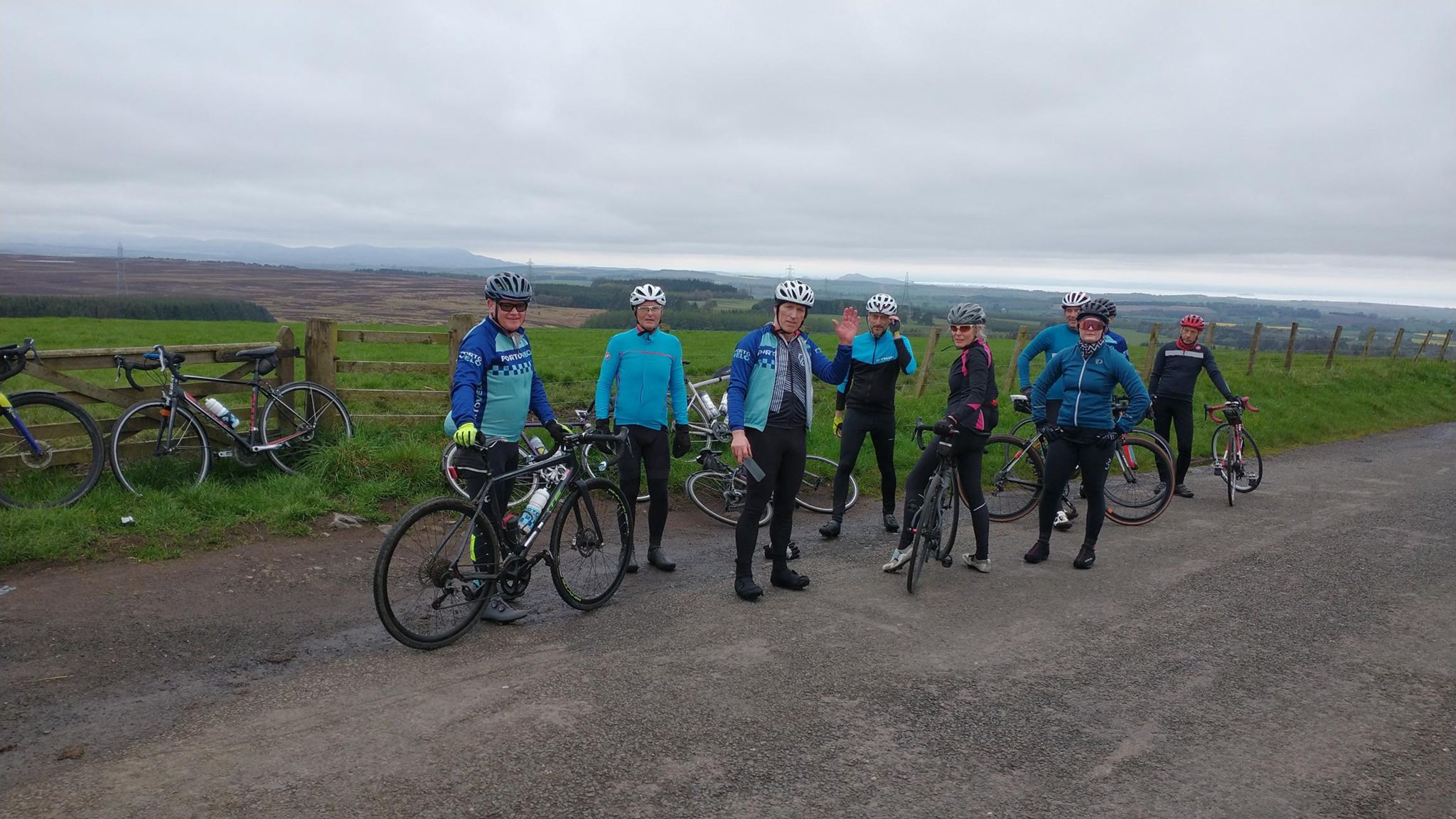 Sunday 14th – The intermediate did a skinny loop to Dunbar (56 miles), while the intermediate-plus group rode via Pencaitland and Humbie to Heriot, back over the Granites (56 miles). A combined fitness and fitness-plus group rode to Dawyck via West Linton and Broughton, back over the Meldons and Carrington (74 miles).